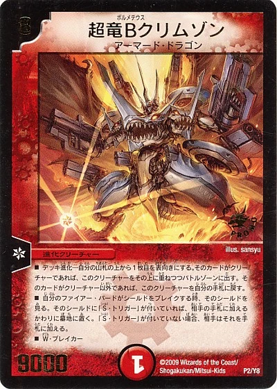 ■ デッキ進化-自分の山札の上から1枚目を表向きにする。そのカードがクリーチャーであれば、このクリーチャーをその上に重ねつつバトルゾーンに出す。そのカードがクリーチャー以外であれば、このクリーチャーを自分の手札に戻す。 ■ 自分のファイアー・バードがシールドをブレイクする時、そのシールドを見る。そのシールドに「S・トリガー」が付いていれば、相手の手札に加えるかわりに墓地に置く。「S・トリガー」が付いていない場合、相手はそれを手札に加える。 ■ |